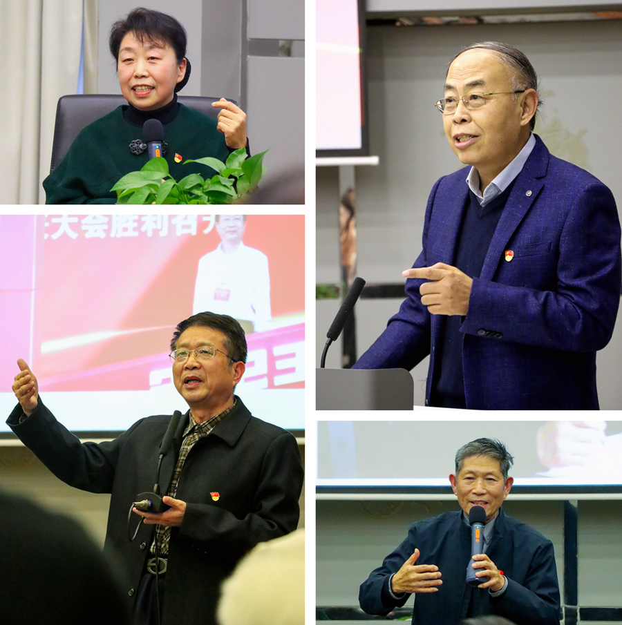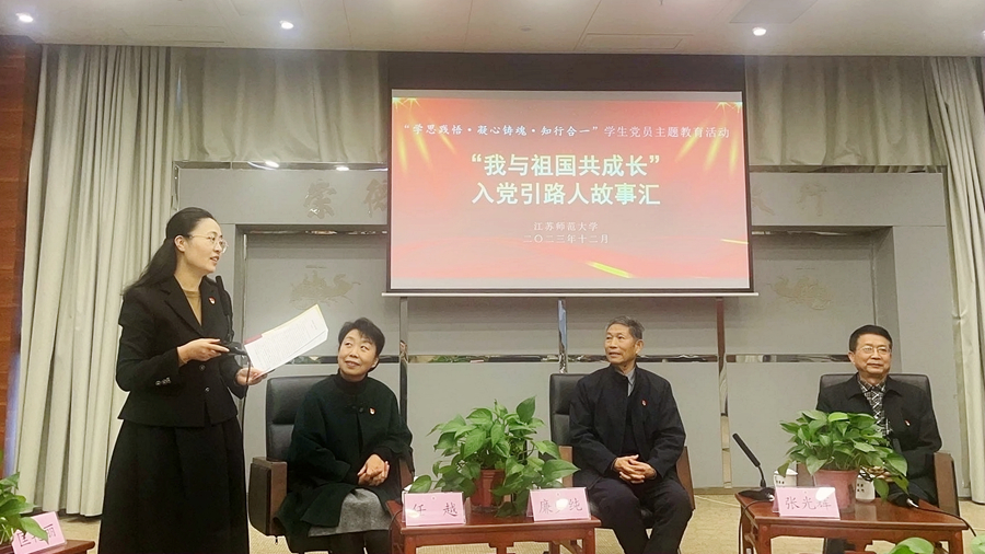 2023年12月28日下午,我校学生党员主题教育活动之“我与祖国共成长”入党引路人故事汇在分析测试中心103室举行。校关工委常务主任、校原党委书记徐放鸣,退休党委廉少纯、任越、张光辉四位老党员应邀出席,全校50余名学生党员代表参加故事汇。本次活动由党委组织部、党校主办,校关工委和马克思主义学院关工委联合承办。