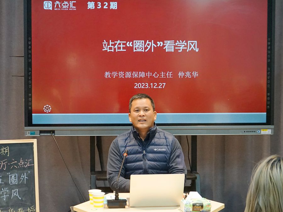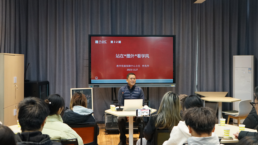 近日,第32期“餐厅·六点汇”活动在泉山校区六点汇实践基地举行。教学资源保障中心主任仲兆华以“站在‘圈外’看学风”这一主题与在场同学进行交流。