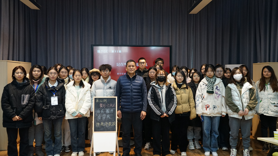 仲兆华以站在“学生圈”外看学风开端,结合自身在特殊时期入学的经历,表达“个人理想与国家命运必须紧紧相连,才是丰满的有价值的,坚定正确的理想信念对每个人都至关重要”这一信念,成为老师后,认识到规划对学业、职业都很重要。仲兆华之后以站在“学工圈”外看学风接续,表示作为曾经的学工人,要注重共性和个性的统一,帮助学生逐步养成良好的生活、学习习惯,逐步增强其内心的求知欲、学习意识,帮助其提高主动学习能力和计划执行力。他表示,作为现在的学工圈外人,学生工作要注意合力而为,助力良好学风形成,鼓励学生有主动学习的意识,主动自我创造条件、创造机会去融入到新时代。最后,仲兆华以站在“学校圈”外看学风收尾,通过看学校和名校的学风,引导学生继承优良传统,向优秀校友学习,察大势、晓利弊、明自我、树目标。他希望同学们正确处理学习与工作、生活与交往、友情与爱情、自律与他律等关系,坚定理想信念,成长为爱国、励志、求真、力行的新时代青年。