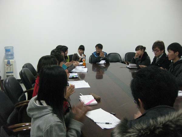 11月10日晚,我校社团联合会在历史文化与旅游学院进行了2010——2011学年社团调研会议。校社团联合会主席助理兼秘书部部长施建飞、监理部部长庄晨、监理部副部长丁洁参加了本次会议。