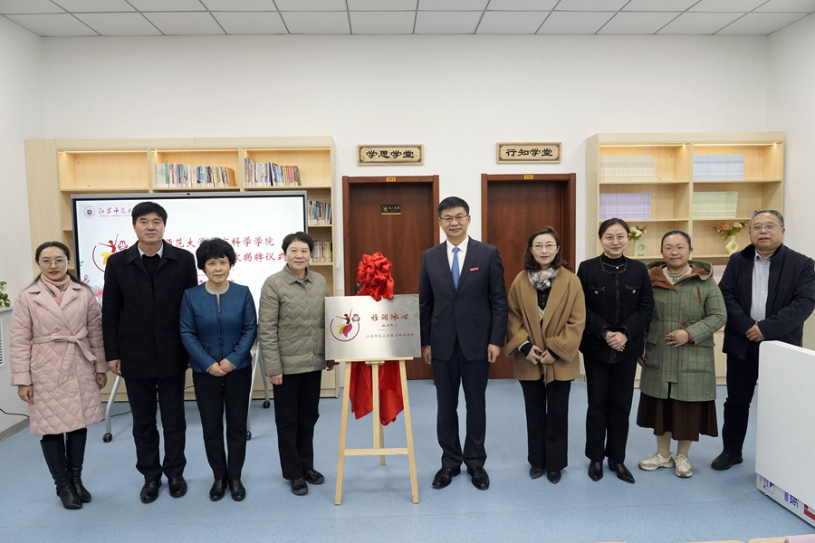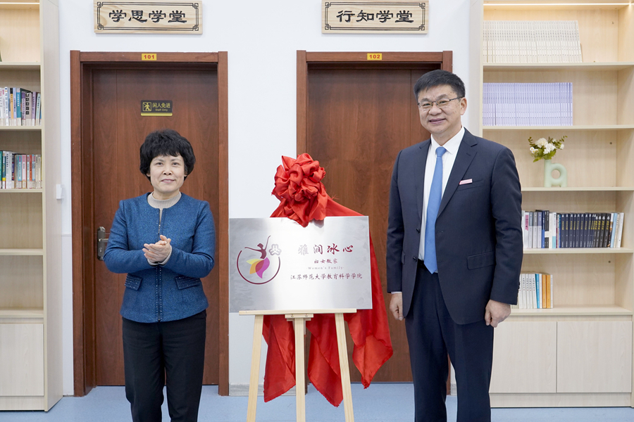 蔡国春与刘红梅共同为教育科学学院“雅润冰心”妇女微家揭牌,“雅润冰心”妇女微家正式成立。仪式结束后,省市妇联领导视察了“雅润冰心”妇女微家的场地环境,观看了江苏师范大学妇女工作风采展示。