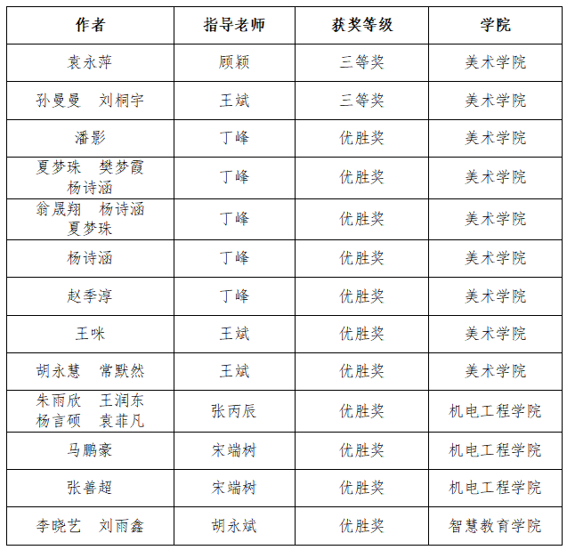 我校高度重视中国研究生创新实践系列大赛,按照“一赛一报”立项培育的形式,落实校内承办单位,做好赛事培育工作,提高参赛规模和质量。美术学院作为研究生“美丽中国”创新设计大赛承办学院,积极开展赛前动员宣传、校内初赛选拔、国赛赛前培训等系列工作,全力以赴做好服务保障,助力选手取得优异成绩。此次赛事得到了机电工程学院、智慧教育学院、传媒与影视学院等相关研究生培养单位的大力支持。
