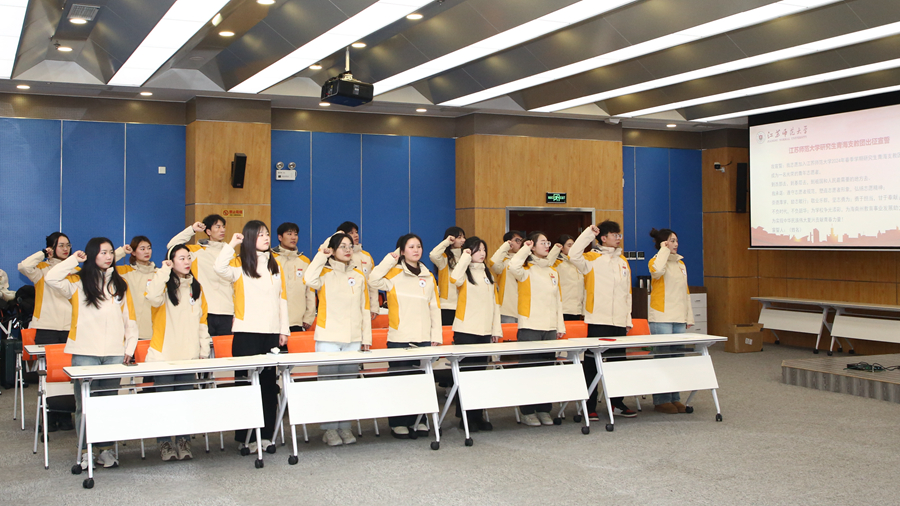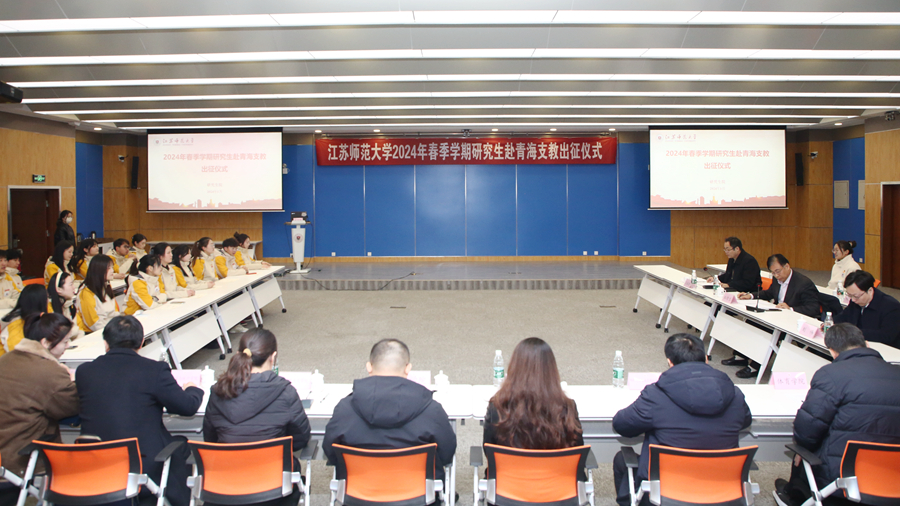 1月17日上午,江苏师范大学第十一届研究生青海支教团出征仪式于泉山校区分析测试中心300会议室举行。校党委常委、副校长杜增吉,研究生院、研工部及相关学院领导,往届研究生青海支教团代表和新一届研究生青海支教团全体成员参加活动。