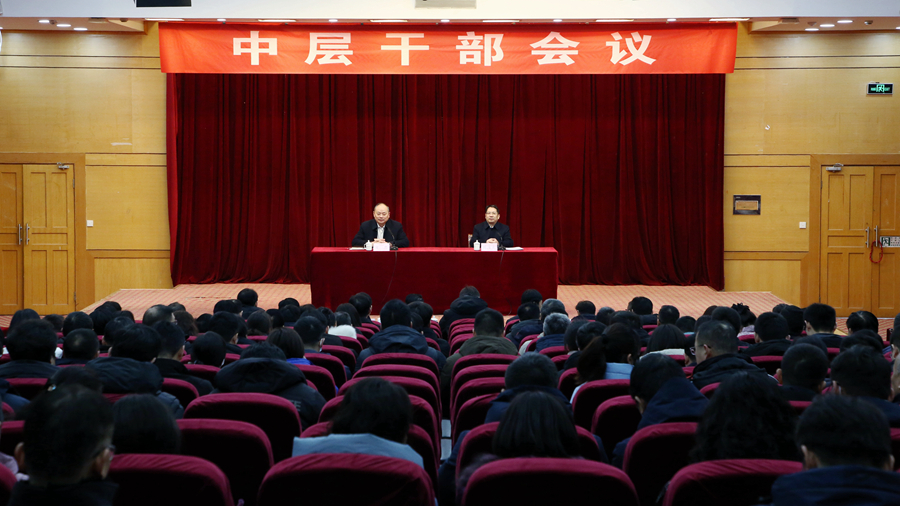 2月25日上午,学校召开全体中层干部会议,布置学校年度工作。在校全体校领导,全校中层干部参加会议。校党委书记方忠主持会议,校党委副书记、校长周汝光作工作部署。