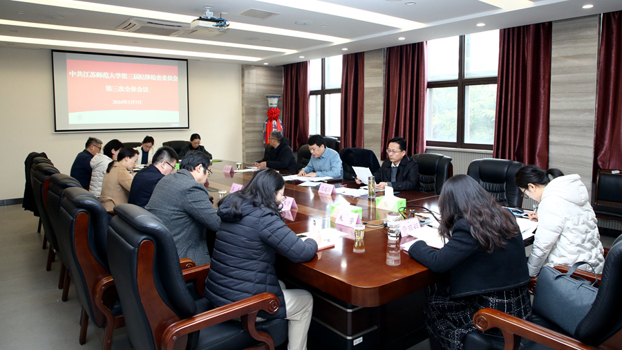 3月7日上午,中共江苏师范大学第三届纪律检查委员会召开第三次全体会议。会议由校纪委书记闾浩主持,全体纪委委员参加会议,纪委机关各处室主要负责人列席会议。