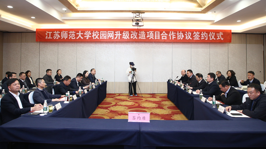 中国电信徐州分公司、中国移动徐州分公司、中国联通江苏分公司负责同志分别讲话,并对我校校园网升级改造项目提出了意见建议。他们表示,将落实好协议相关内容,进一步深化校企合作,全力支持江苏师范大学智慧校园建设和高质量发展。