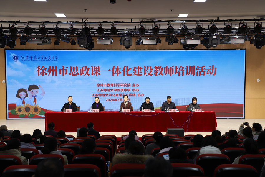 为协同推进大中小学思政课一体化建设,提升思政课教师的专业素养和课堂教学质量,3月18日,江苏师范大学马克思主义学院与徐州市教育科学研究院、江苏师范大学附属中学共同举办徐州市思政课一体化建设教师培训活动。市委教育工委副书记刘艳,我校马克思主义学院党委书记薛深,市教科院副院长程廷伟,江苏师范大学附属中学党委书记张焰、校长石鑫出席了培训活动。市直属学校、各县区教研员、思政课骨干教师及我校马克思主义学院师生等300人参加了此次活动。活动在江苏师范大学附属中学报告厅举行。