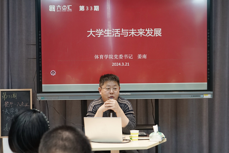 3月21日,第33期“餐厅·六点汇”活动在泉山校区六点汇实践基地举行。体育学院党委书记姜南书记就“大学生活和未来发展”这一主题与同学们进行了交流。