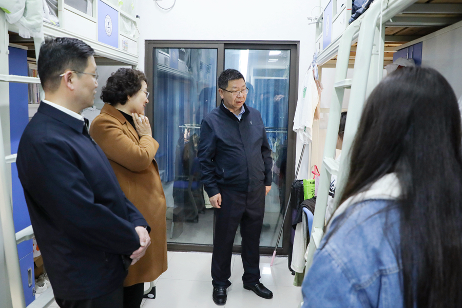 会后,钟卫华一行参观、走访了图书馆、学生宿舍、食堂等处,与学生餐叙交流,了解思想动态。