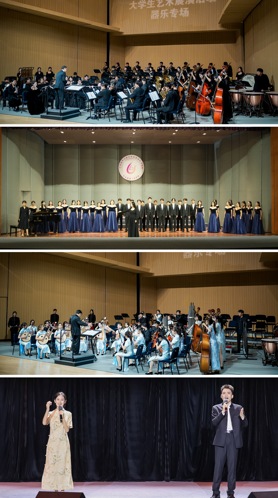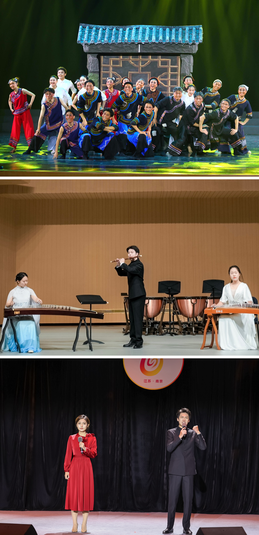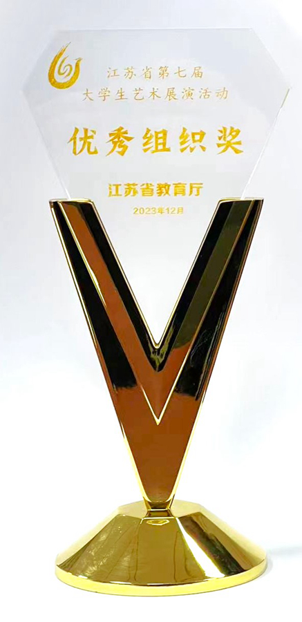 近日,由江苏省教育厅主办的江苏省第七届大学生艺术展演活动优秀节目汇报演出在南京财经大学举行,我校团委(艺术教育中心)负责同志应邀在现场观看演出并参加颁奖仪式。在本届省大学生艺术展演活动中,我校共报送38件作品参赛,其中,艺术表演类作品11件、艺术实践工作坊3件、艺术作品20件、微电影3件、高校美育改革创新优秀案例1件。在我校师生的共同努力下,最终共荣获省赛奖项42项,其中特等奖4项、一等奖4项、二等奖6项、三等奖21项,3项原创作品荣获优秀创作奖,3名学生荣获优秀大学生艺术团团员称号,学校荣获“优秀组织奖”,入围国赛作品1项。