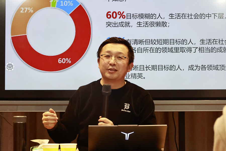 孙配贞通过趣味游戏引入时间这一话题,以自身学习经历和详实的调查数据引导同学们明晰自身需求,树立远大目标。通过视频展示向同学们介绍smart原则目标设置法,告诉同学们如何设置目标,如何正确进行时间管理,表达了时间分配的重要性,向同学们提出了“四象限法则”与“番茄工作法”,让同学们克服拖延的习惯。孙配贞鼓励同学们把握当下,将时间充分利用起来,合理安排当下的每分每秒,积极作为。