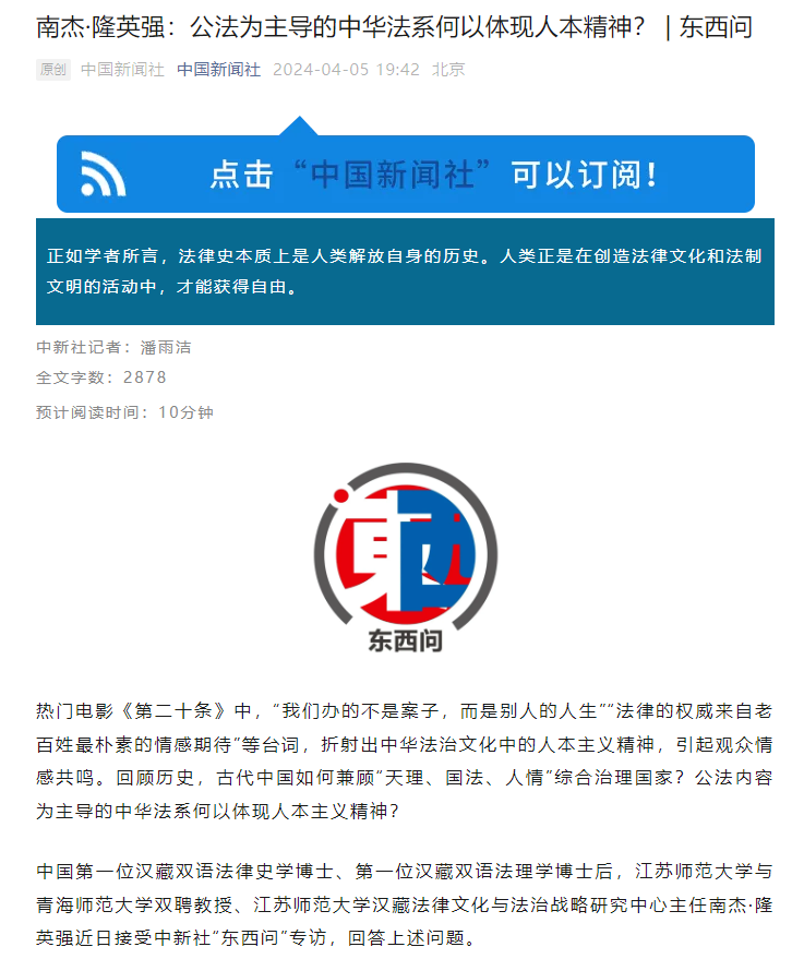 南杰·隆英强:公法为主导的中华法系何以体现人本精神?