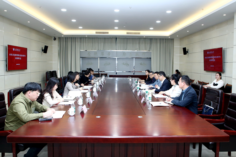 4月23日上午,江苏省教育国际交流协会秘书处陶向东一行10人来我校调研。校党委常委、副校长张玉勤出席会议,国际合作交流处、继续教育学院、马克思主义学院有关同志参加了会议。