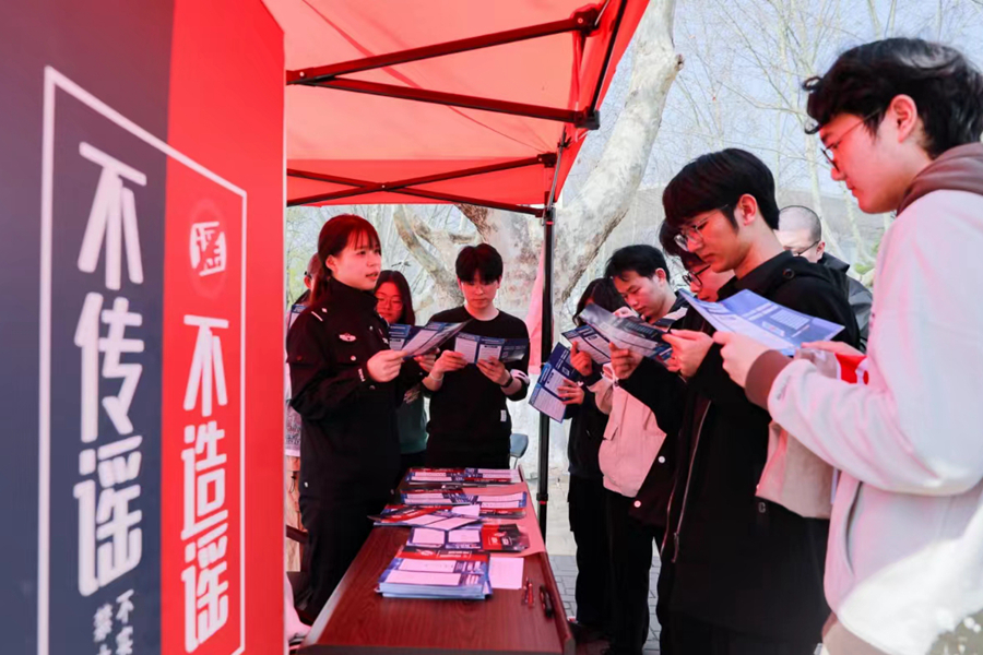 为积极营造安全健康的校园网络环境,近日,我校保卫处联合徐州市公安局铜山分局开展打击网络谣言宣传活动,向师生普及网络谣言的危害和防范知识,坚决依法打击编造、传播网络谣言的违法犯罪行为,维护网络空间的清朗和稳定。