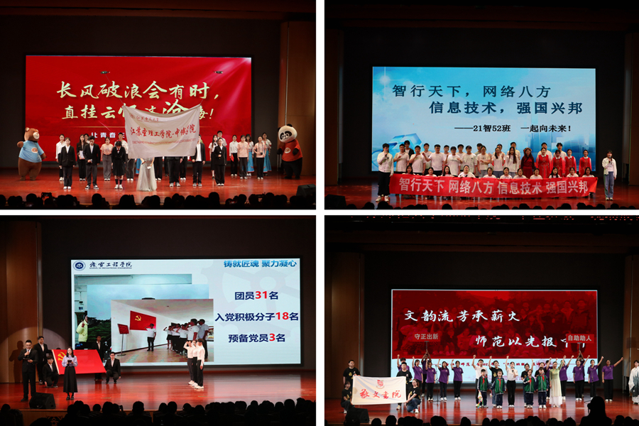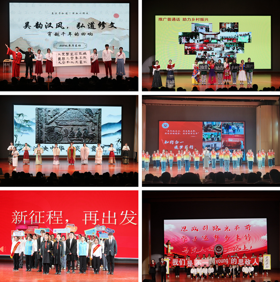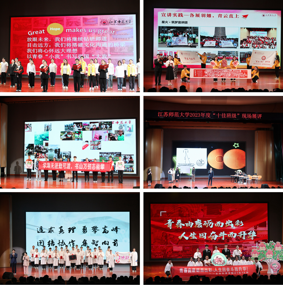 展评现场,由各个学院推荐的23个班级围绕“班风正、学风好、学子优、班委强、荣誉多”等五个方面,以主题汇报、情景剧、朗诵和歌舞表演等多种表现形式展示了班级建设的突出成绩和特色亮点,充分展示出班集体昂扬向上的精神风貌、奋发有为的青春力量和矢志不渝的责任担当,彰显了各学院在班级建设方面的创新举措和在人才培养方面的显著成效。各班级的精彩展示赢得现场阵阵掌声。