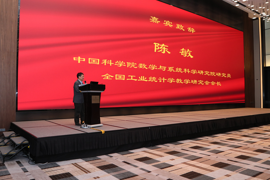 中国科学院院士、发展中国家科学院院士、江苏师范大学陈木法教授,中国科学院院士、北京大学陈松蹊教授,全国工业统计学教学研究会会长、中国科学院数学与系统科学研究院陈敏研究员分别致辞。陈木法院士介绍了江苏师范大学数学研究院基本情况和研究院大楼建设情况,欢迎青年学者加盟;他还面向青年学者们进行了学术和研究方面的指导,给出合理建议。陈松蹊院士高屋建瓴,鼓励青年学者立足国家需求,关照社会现实,打破学科阈限,勇敢开拓创新。陈敏研究员介绍了全国工业统计学教学研究会和青年统计学家协会及其发展及年度重点工作,预祝大会圆满成功。