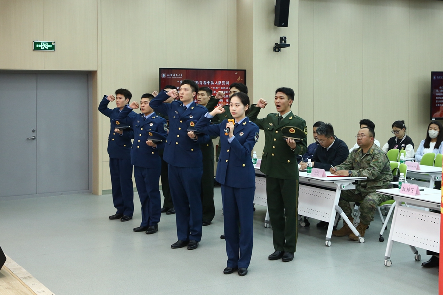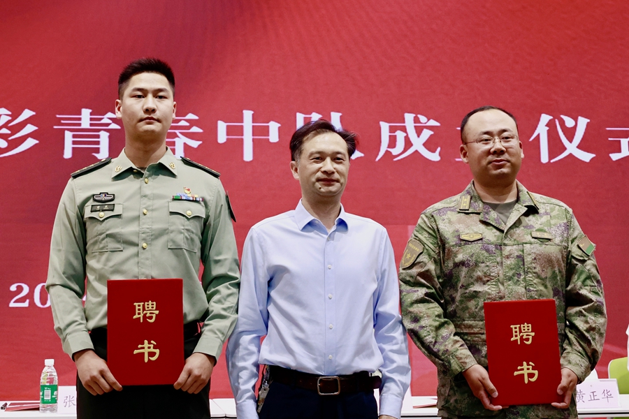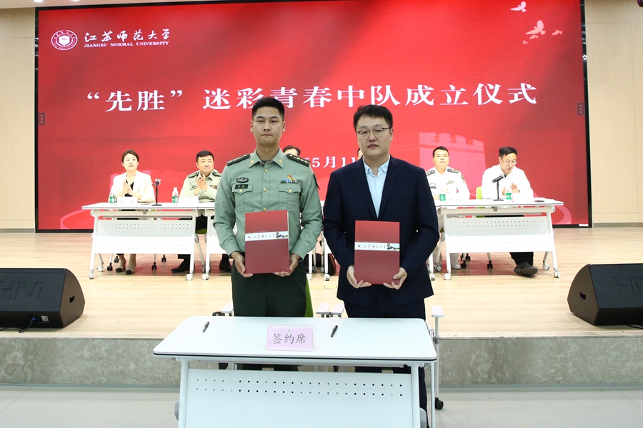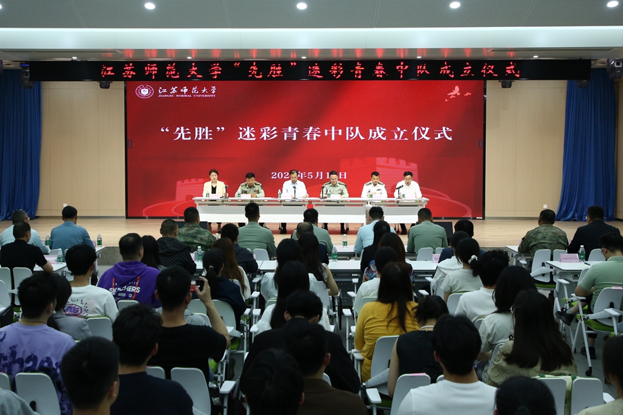 5月11日下午,我校“先胜”迷彩青春中队成立仪式在泉山校区路演大厅举办。校党委常委、副校长张其飞,徐州军分区党委常委、动员处上校处长王少亭,徐州市泉山区人民武装部上校部长赵超出席活动,徐州军分区,徐州市辖区、在徐各高校人民武装部、32506部队、学校职能部门有关负责同志,我校师生代表、“先胜”迷彩青春中队成员代表等150余人参加仪式。
