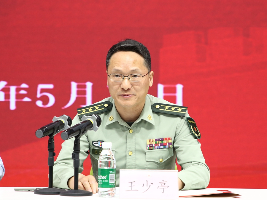 王少亭对我校在国防教育、征兵动员等工作上取得的成绩表示了肯定。他表示,“先胜”迷彩青春中队成立为驻徐高校军事兴趣类社团建设做出了示范、提供了样板。在徐高校军事兴趣类社团建设要把稳把正军事兴趣类社团的建设方向;要选好选优军事兴趣类社团的对象成员;要规范规正军事兴趣类社团活动的组织实施;要聚心聚力推动军事兴趣类社团的建设发展。希望“先胜”迷彩青春中队向下扎根、向上生长,为全市高校军事兴趣类社团建设走在前、作表率,当标杆、作模范。