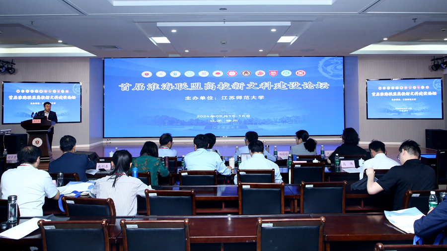 5月16日上午,淮海经济区卓越乡村教师联盟高校新文科建设论坛在云龙校区语言科学与艺术学院综合实验楼四楼报告厅成功举办,商丘师范学院副校长郭文佳、枣庄学院副校长安涛出席活动,来自淮海经济区12所联盟高校近50名代表共同探讨新文科建设的相关议题。我校副校长娄峥嵘出席论坛并讲话,教务部部长沙先一主持活动。