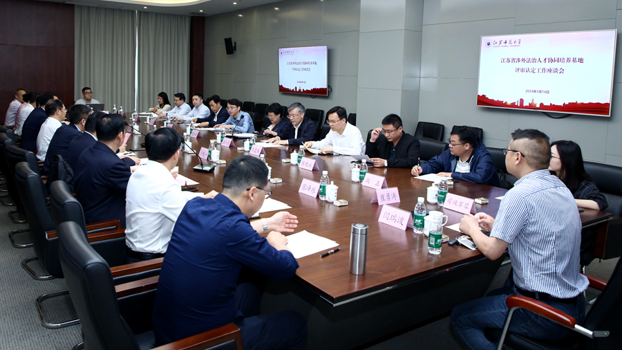 近日,江苏省委依法治省办范沁芳副主任一行来校开展省涉外法治人才协同培养基地评审认定工作,徐州市司法局相关领导陪同考察。我校校长周汝光、副校长赵鹏,教务部负责同志,法学院领导班子成员及国际法教研室教师代表参加了相关评审认定环节。评审认定工作座谈会由赵鹏主持。
