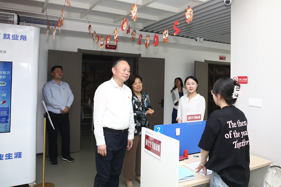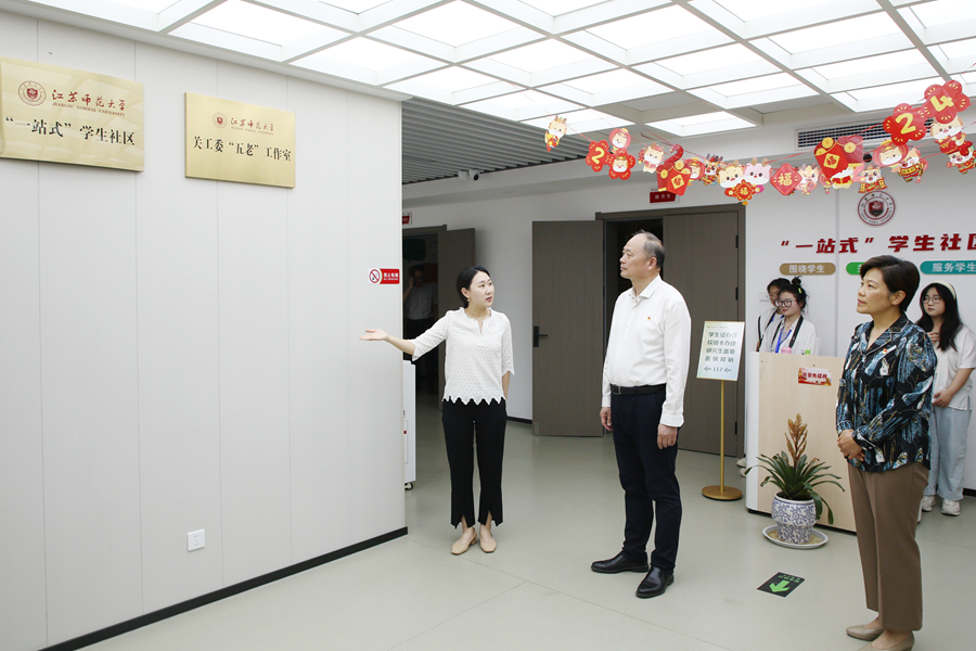 方忠一行依次察看了党建工作室、青年学习社、辅导员工作坊、阅享空间、师范生技能提升空间、职业生涯规划空间、学生事务服务中心等场所,详细了解社区的规划布局、管理模式、业务流程和文化建设等情况。在学生事务服务中心,方忠与自管会学生工作人员亲切交流,详细询问服务内容、办事流程和工作中的难点问题,并勉励他们以更优质的服务着力提升同学办事满意度。