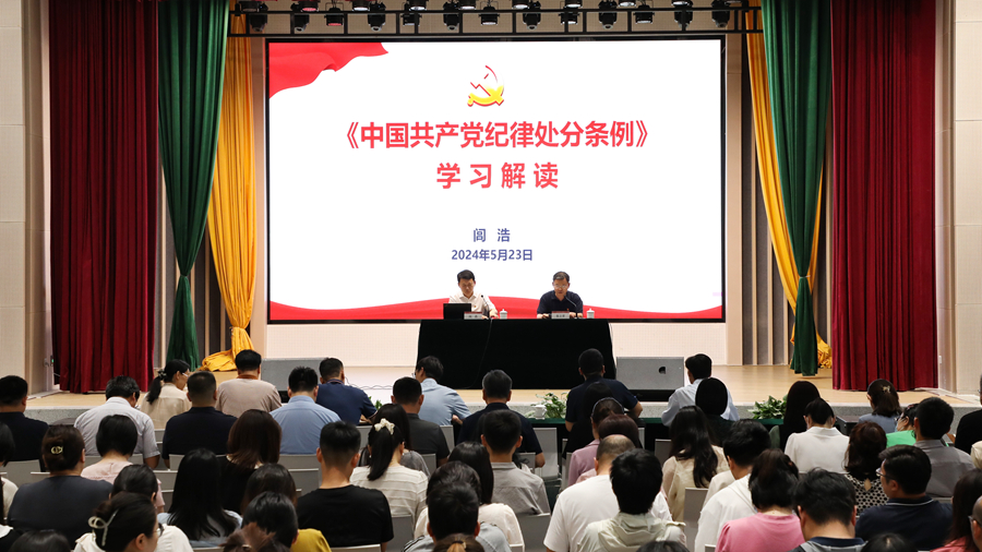 5月23日下午,科文学院党纪学习教育专题辅导报告会在大学生活动中心报告厅举行。校党委常委、纪委书记、省监委派驻监察专员闾浩就《中国共产党纪律处分条例》学习作了专题辅导报告。科文学院领导班子成员、教职工党员180余人参加报告会。校党委党纪学习教育专班成员、纪委监督检查处和组织部有关同志应邀参加报告会。