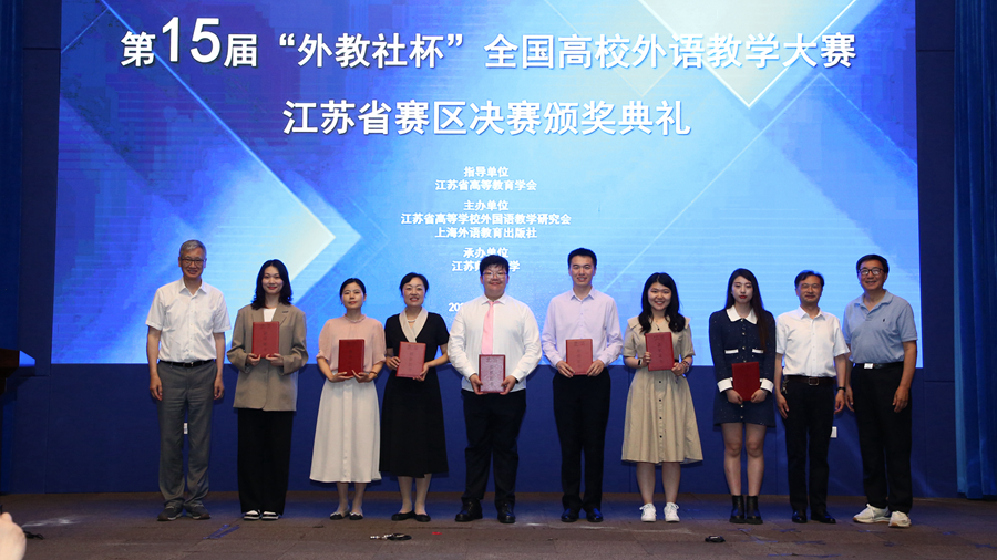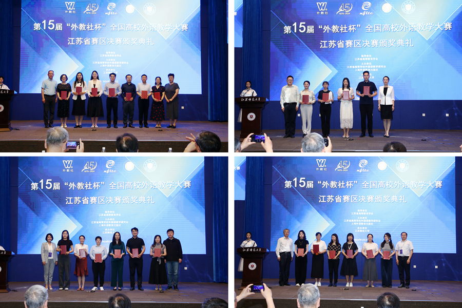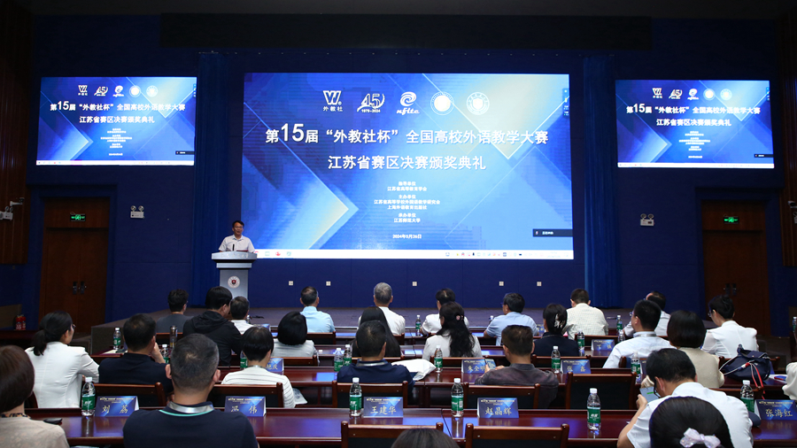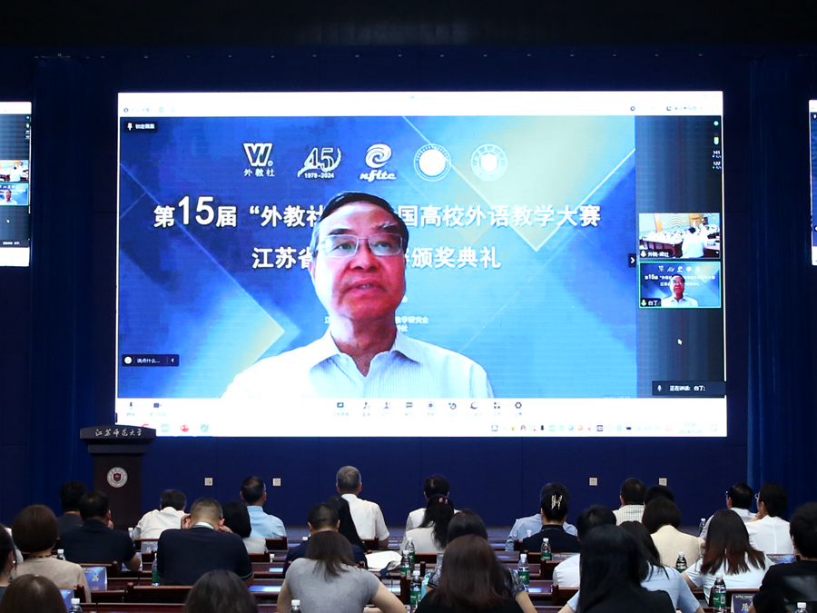 江苏省高等教育学会会长丁晓昌、江苏省高等学校外国语教学研究会会长王海啸、常务副会长李霄翔、秘书长胡永辉、上海外语教育出版社江苏中心主任黄新炎、江苏师范大学党委常委、副校长张其飞以及评委代表出席颁奖礼。