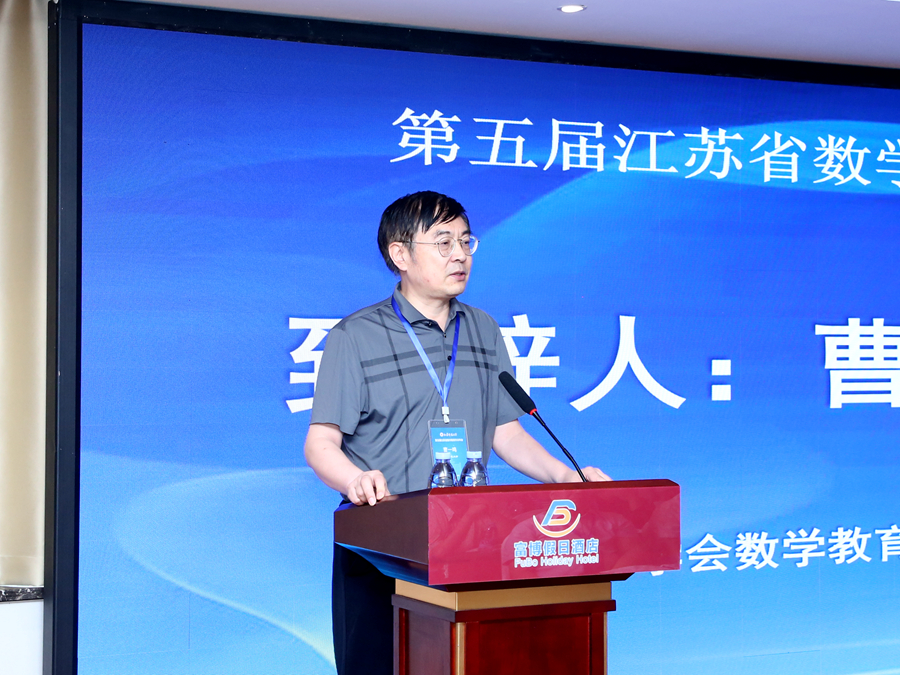 曹一鸣代表中国数学会数学教育分会在致辞中高度赞扬江苏省数学学会数学教育专业委员会定期召开学术年会,讨论数学教育前沿问题,帮助破解基础教育难点,积极推动基础教育改革,为全国数学教育的发展作出表率。