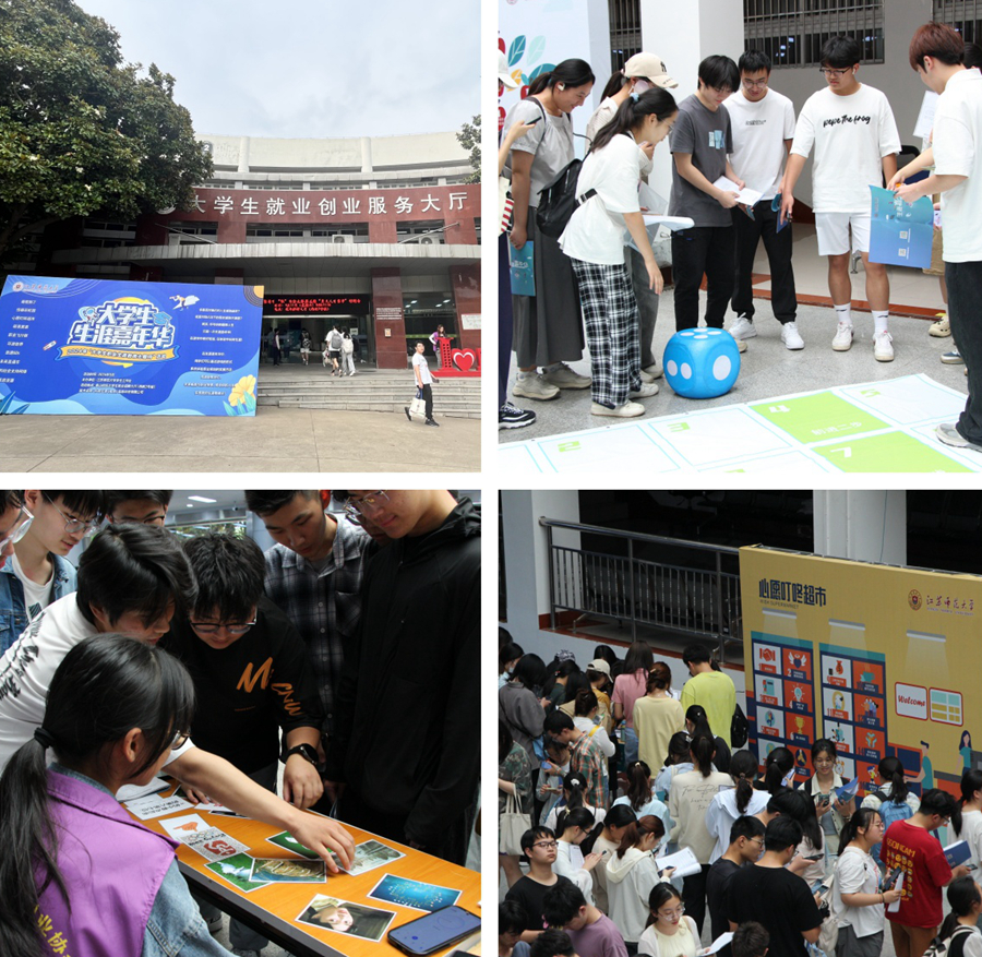 本次活动将职业生涯规划理论元素进行集成,为学生提供各种直接参与、有所体验、激发行动的大型互动游戏,共设自我探索、职业探索、能力充电和为梦想前行四大区域,包括“性格彩虹图”“职业飞行棋”“生涯启发器”等10个游戏关卡。每一个闯关游戏背后均有相关的生涯理论支撑,层层闯关。同学们在体验活动乐趣的同时,逐步增强学生的主观感受,激发学生职业规划兴趣,促进其生涯自助。