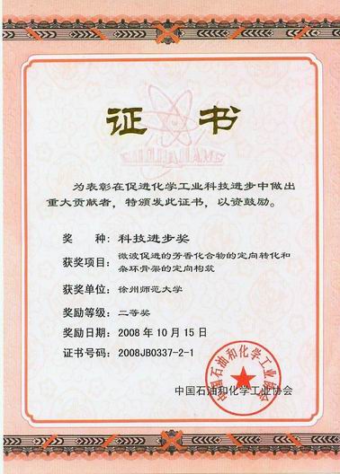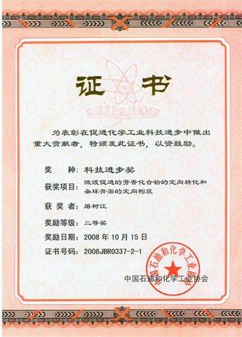 2008年10月26日,在北京人民大会堂召开的中国石油化学工业科学技术大会上,对全国在石油化学工业方面做出突出贡献的单位和个人进行了表彰。我校化学化工学院屠树江教授带领的课题组研究的课题“微波促进的芳香化合物的定向转化和杂环骨架的定向构筑”荣获科技进步二等奖。特向屠树江教授和课题组表示祝贺。