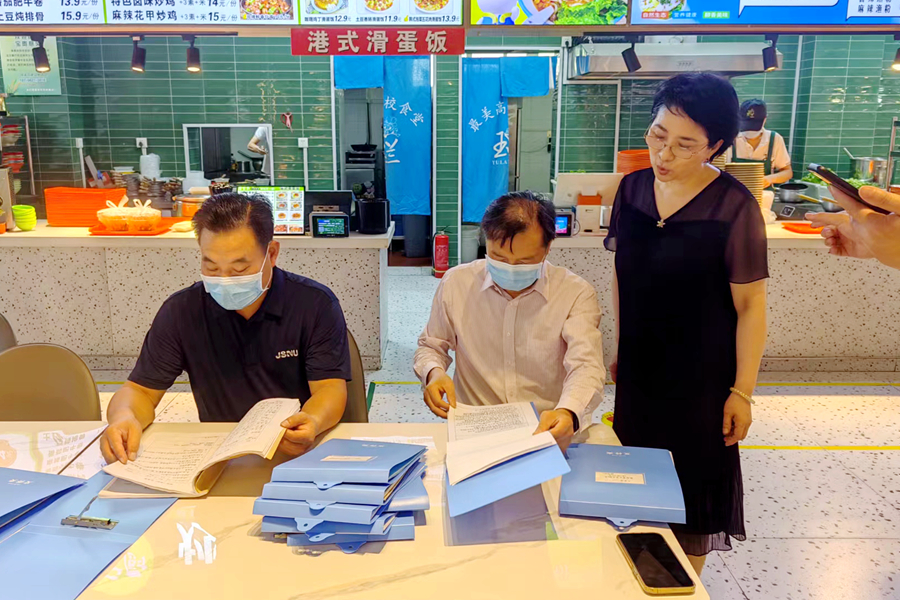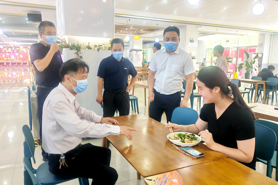 张其飞一行先后来到泉山五食堂、玉兰融合餐厅、忆江南风味餐厅、泉山七食堂以及云龙食堂。每到一处,张其飞都仔细了解食堂经营运行情况,重点检查各食堂(餐厅)在原料采购保管、烹饪加工、食品留样、剩余食品处理、餐具洗消、天然气安全使用以及油烟管道清理等方面的工作情况。同时与就餐同学亲切交谈,询问学生对餐厅环境、饭菜价格、饭菜品种、饭菜质量等方面的意见和建议。