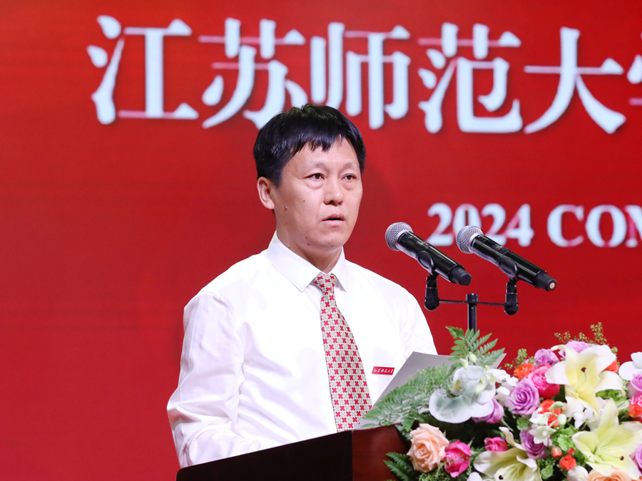 父母是孩子的第一任老师,也是孩子远航时的避风港,他们时时刻刻都在关注孩子的成长。文学院2024届本科毕业生王聪玮的母亲,徐州市优秀教育工作者、市优秀女教师、市带头优师,铜山区实验幼儿园副园长朱薇女士,作为家长代表发言。她勉励同学们做勇于探险的人生掌舵人;做勇担重任拼搏建功的师大人;做拥抱平凡又能成就非凡的社会人。