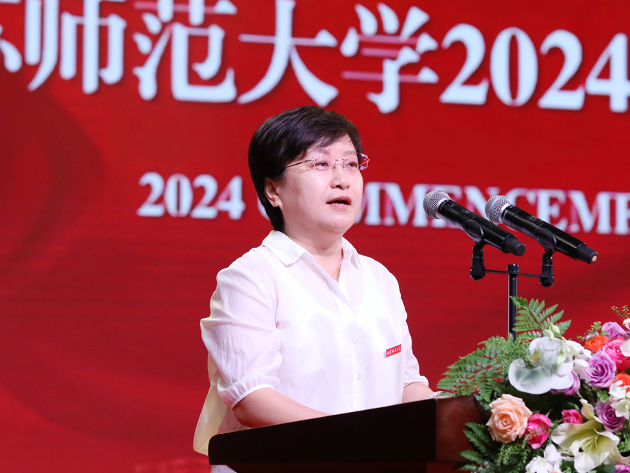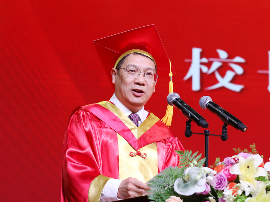 校学位评定委员会主席、校长周汝光在典礼上致辞,代表全校师生员工,向圆满完成学业的4882名本科毕业生同学表示最热烈祝贺,向一路关心培养广大同学成长成才的家长和老师致以崇高敬意和衷心感谢。他指出,四年的时光,一生的回忆。四年大学时光,同学们见证了彼此的成长和母校的发展,母校和师长们也见证了每个同学的成长与蜕变。习近平总书记寄语年轻一代,要争做有理想、敢担当、能吃苦、肯奋斗的新时代好青年,奋力书写为中国式现代化挺膺担当的青春篇章。同学们即将背上行囊、扬帆起航,作为新时代青年,要坚持终身学习,提升自我,笃行不怠;要拥抱无限可能,锤炼韧性、敢想敢干;要胸怀国之大者,激扬青春、砥砺奋斗。最后,周汝光深情叮嘱全体2024届本科生,无论今后身在何处,师大永远是广大同学的坚强后盾和精神家园,希望同学们前程似锦,一往无前。