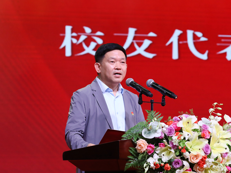 学子足迹遍天涯,母校春晖永相随,校友的成长发展和事业成就也是母校的殷殷期盼。建校72年来,学校已培养了近30万名毕业生,他们深耕于社会各个领域,作出了突出的贡献。我校化学与材料科学学院1998届校友、上海市松江区教育局副局长郭宁伟作为校友代表发言。他寄语同学们:对学生,坚信“真心”与“善意”的强大力量;对课堂,尊重课大于天的“初心”与“使命”;对教育,相信“德育”与“教学”的本为一体;对未来,用“创意”与“激情”拥抱这个时代。