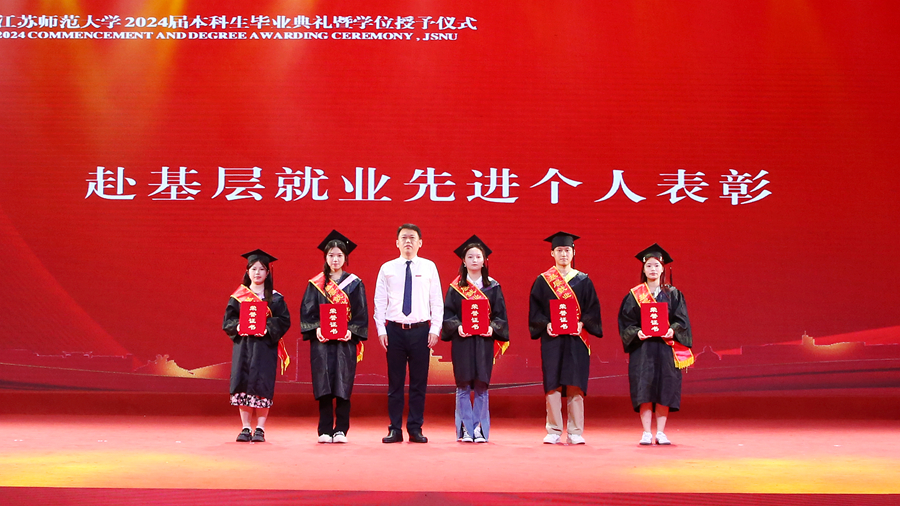 他们毅然投身基层,深耕厚植,以青春为笔,书写奉献华章,在祖国广阔天地间绘就青春梦想;他们将小我融入家国大我,让青春在祖国最需要的地方绚丽绽放。他们是赴基层就业的师大学子。毕业典礼上,对2024届毕业生赴基层就业先进个人进行了表彰。校纪委书记闾浩为“毕业生赴基层就业先进个人”代表颁发了荣誉证书。