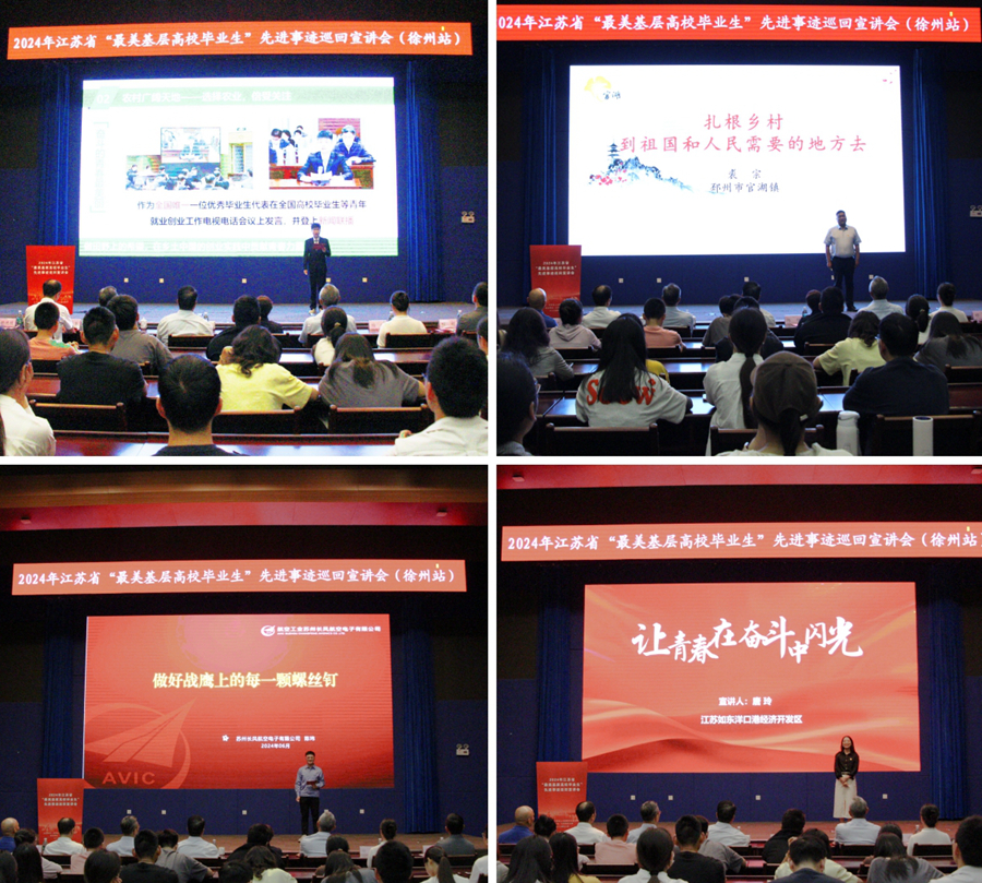 宣讲活动中,带领400多位乡亲致富的“江苏果牧不忘家庭农场”党支部书记、总经理,“95后”“新农人”华梦丽;深入一线了解群众诉求,解决村民出行难题,推动村集体经济发展,被群众们称为“贴心人”的邳州市官湖镇人民政府副镇长裘宗;扎根企业生产一线,秉持精益求精的工作态度,不断钻研生产制造技术,高质量完成30多项技术攻关,为建设航空强国积极贡献青春力量的苏州长风航空电子有限公司工艺员陈玮;通过“三支一扶”计划开启追梦之旅,助力社区特色种植项目扩产提质,帮助企业成功申报省双创团队,助力当地经济高质量发展的如东洋口港经济开发区党政办主任唐玲分别结合个人成长历程,分享了基层一线工作创业的故事。他们用朴实的语言,真挚的情感,讲述了将小我融入大我,将青春献给祖国的精彩故事,赢得了现场师生们的热烈掌声。