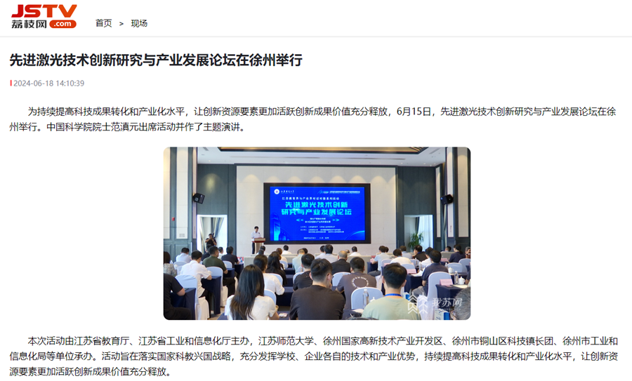 江苏电视台荔枝网6月18日报道在我校举办的先进激光技术创新研究与产业发展论坛,报道内容如下: