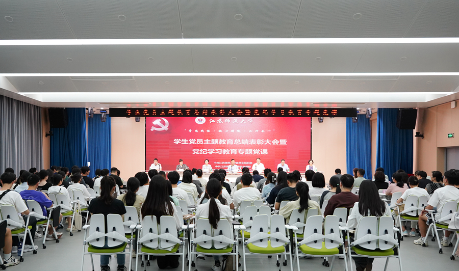 值中国共产党成立103周年之际,7月1日下午,江苏师范大学在路演大厅举办“学思践悟·凝心铸魂·知行合一”学生党员主题教育总结表彰大会暨党纪学习教育专题党课。学校相关职能部门负责人、各学院党委副书记、学生党员以及发展对象代表约120余人参加。