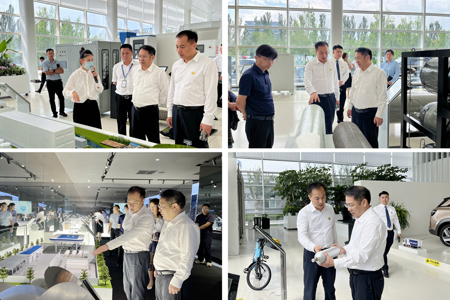 周汝光一行还在卜庆团的陪同下,参观了国际氢能示范区。该园区立足全球视野,构建了集氢站网络、科技园区、应用场景于一体的氢能产业发展生态体系,并配套有氢能生产车间和产品展示区,是亚洲最大的氢能基地之一。
