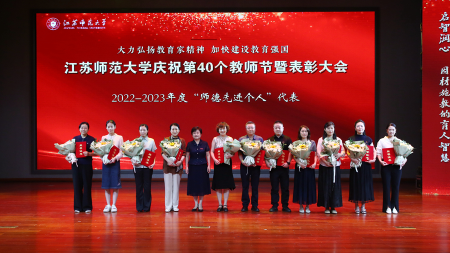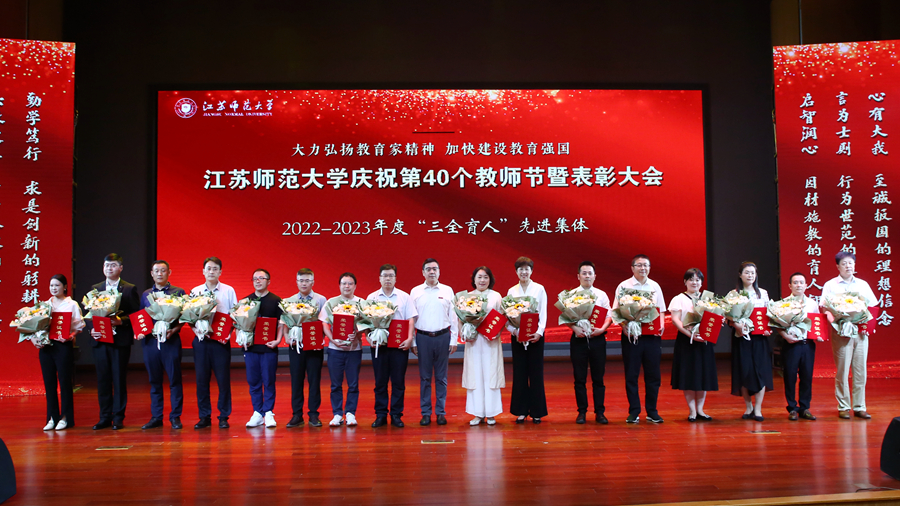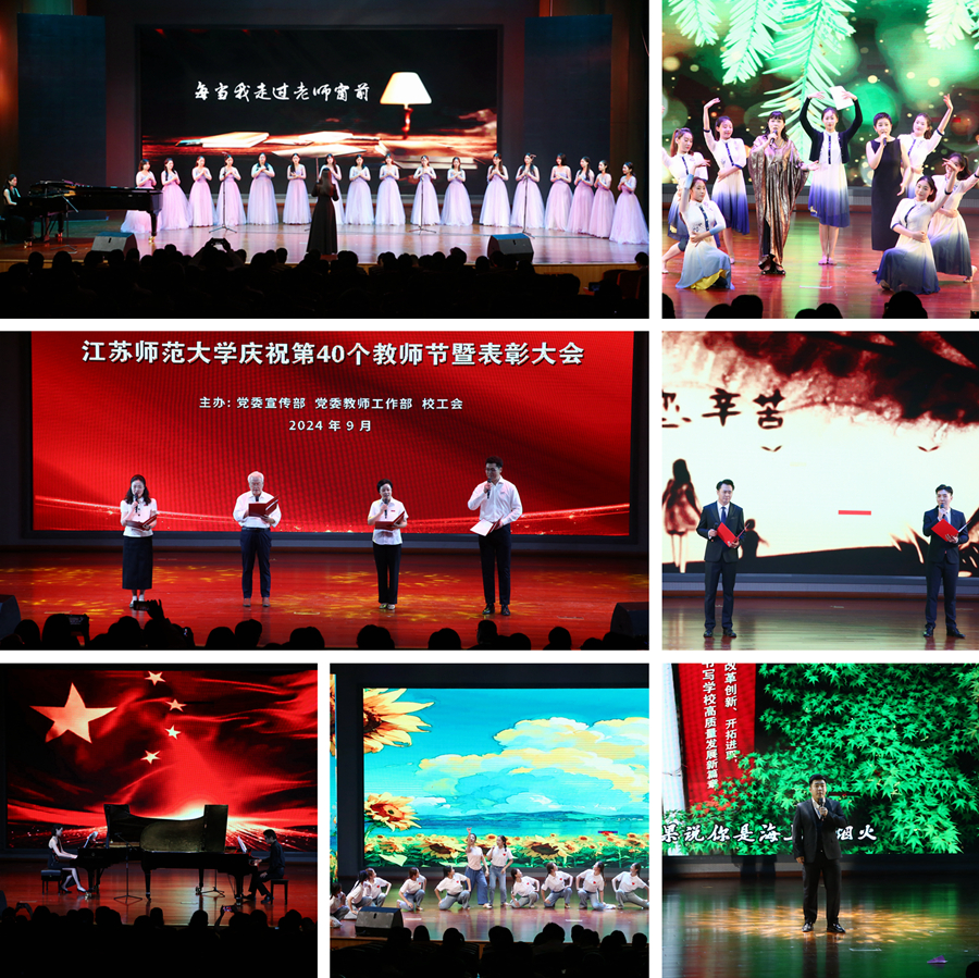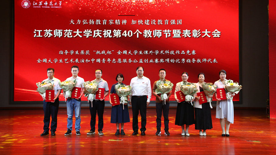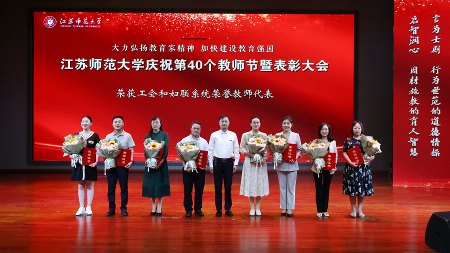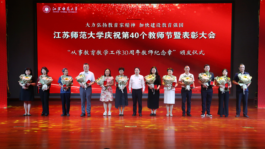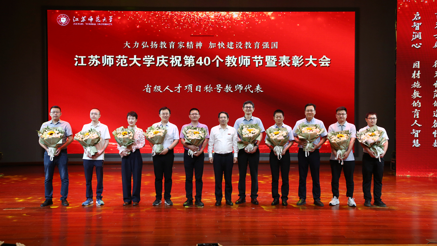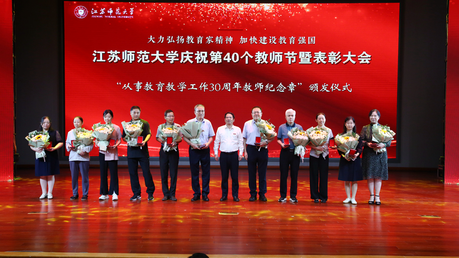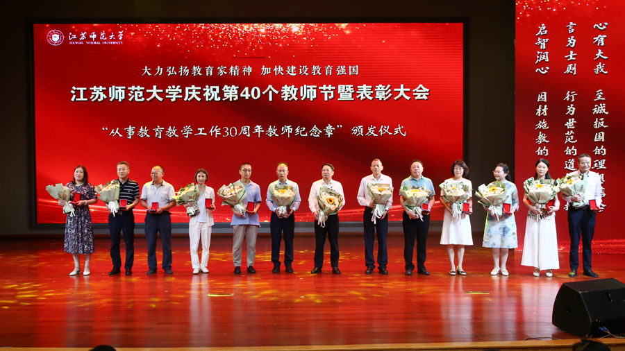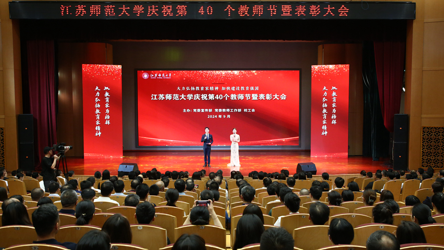 教育强国担使命,躬耕杏坛践初心。为庆祝第四十个教师节,我校于9月10日下午在马可音乐厅举办以“大力弘扬教育家精神,加快建设教育强国”为主题的庆祝第40个教师节暨表彰大会。在校全体校领导,江苏省教育基金会副秘书长杨明广出席会议,受表彰的先进集体和个人代表,校属各职能部门主要负责人,各学院主要负责人,新入职教师以及师生代表参加活动。