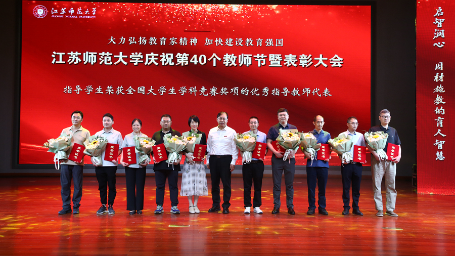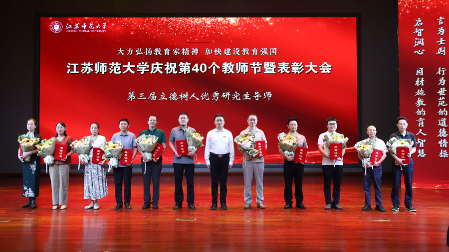 岁物丰熟,春华秋实;栉风沐雨,玉汝于成。他们用深厚的学识和高尚的品格悉心教诲,为学子们撑起了远航的风帆,铺就成功的大道。大会对第三届立德树人优秀研究生导师、优秀研究生导师团队,指导学生荣获全国大学生课外学术科技作品竞赛和文化实践活动奖项的优秀指导教师,荣获全国大学生专业竞赛奖项的优秀指导教师,江苏省优秀硕士论文指导教师,获得省部级以上党建思政工作奖项的教师进行了表彰。