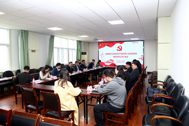 4月22日上午,江苏省委教育工委党史学习教育派出第六巡回指导组来我校调研指导徐州市各省属高校党史学习教育开展情况,调研指导座谈会在泉山校区分析测试中心300会议室举行。