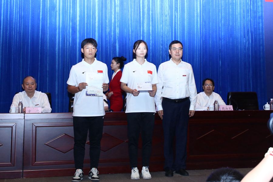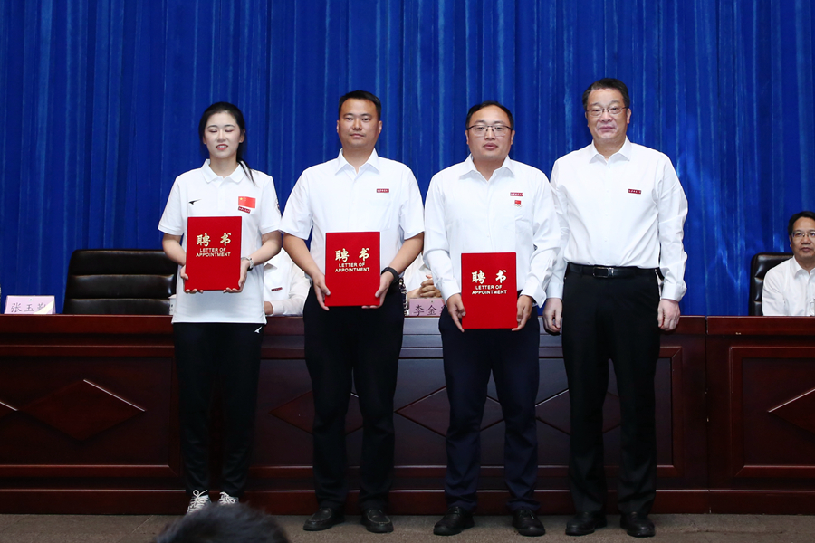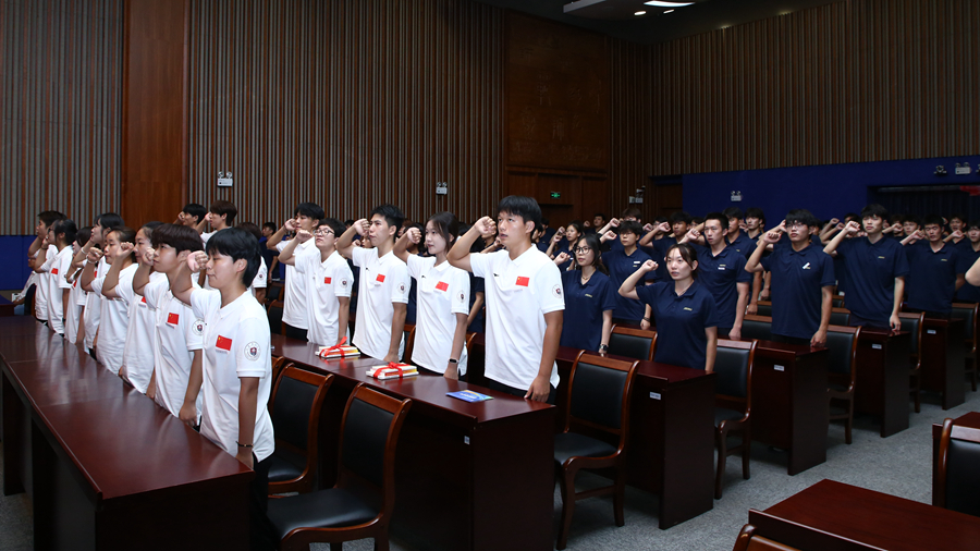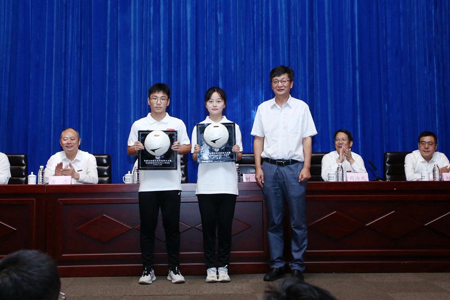 刘彤向学生代表赠送纪念足球,方忠向学生代表赠书,张玉勤向足球运动专业学业导师、辅导员、班主任颁发聘书,赵鹏向学生代表颁发足球运动专业录取荣誉证书。全体学生庄严宣誓,时刻准备着,为足球事业高质量发展不懈奋斗,为中华民族伟大复兴不懈奋斗。