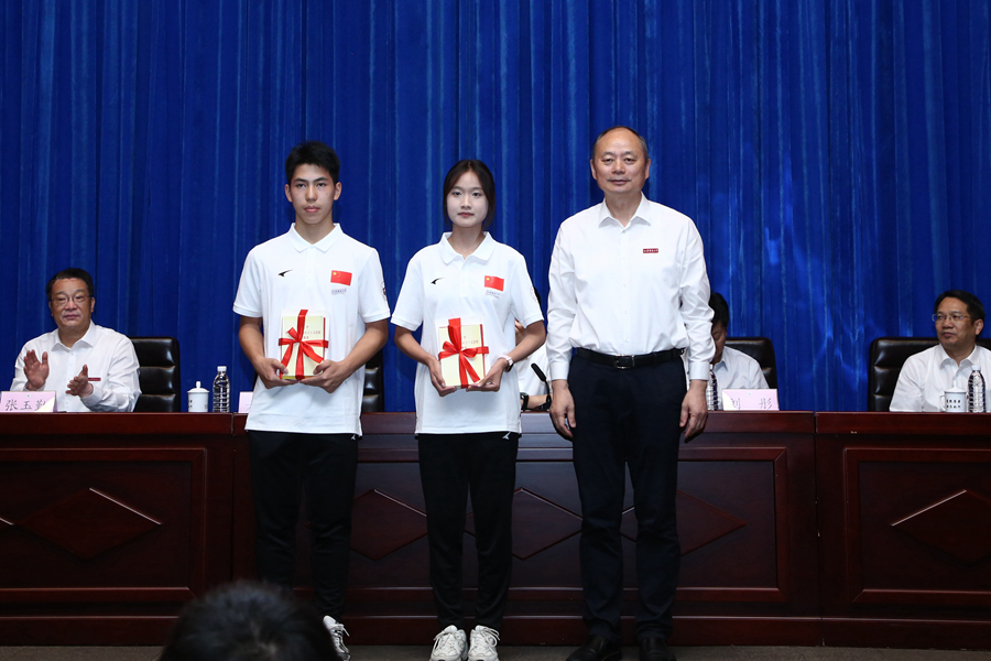 李金泉在典礼上讲话。他指出,要深入学习贯彻习近平总书记关于足球改革发展工作的重要指示批示精神,全面贯彻党中央、国务院关于足球工作的决策部署,落实省委省政府的工作要求,希望学校扛起责任担当,全力支持和建设好足球运动专业,进一步提升体育学院办学水平,努力把足球运动专业建设成为国内有影响力的品牌专业。希望首届足球运动专业的同学们始终保持对梦想的执着追求,用汗水与努力,为我国足球运动发展和教育强国、体育强国建设贡献青春力量。