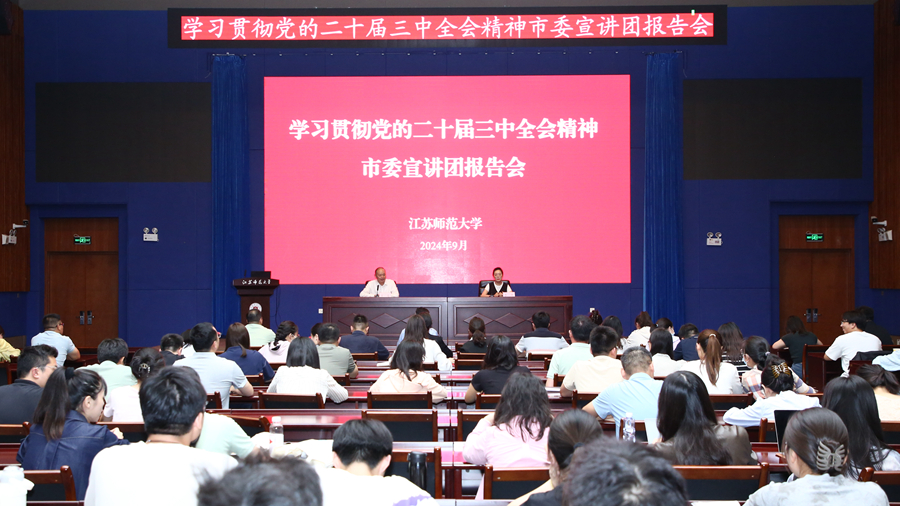 为深入学习宣传贯彻党的二十届三中全会精神,按照徐州市委工作安排,9月29日下午,学习贯彻党的二十届三中全会精神市委宣讲团成员、我校马克思主义学院李丹副教授作学习贯彻党的二十届三中全会精神宣讲报告。学校部分党政领导干部,全体辅导员,第27届中国青年志愿者研究生支教团全体成员,第15期“青马工程”培训班全体学员聆听了报告。校党委书记方忠主持报告会。