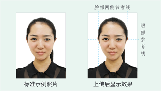 (4)脸部无遮挡,头发不得遮挡脸部、眼睛、眉毛、耳朵或造成阴影,要露出五官;