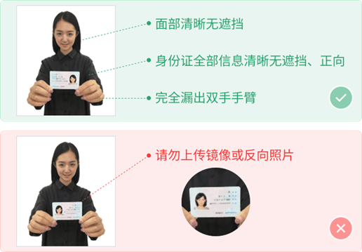 (4)确保身份证上的所有信息清晰可见、完整(没有被遮挡或者被手指捏住);