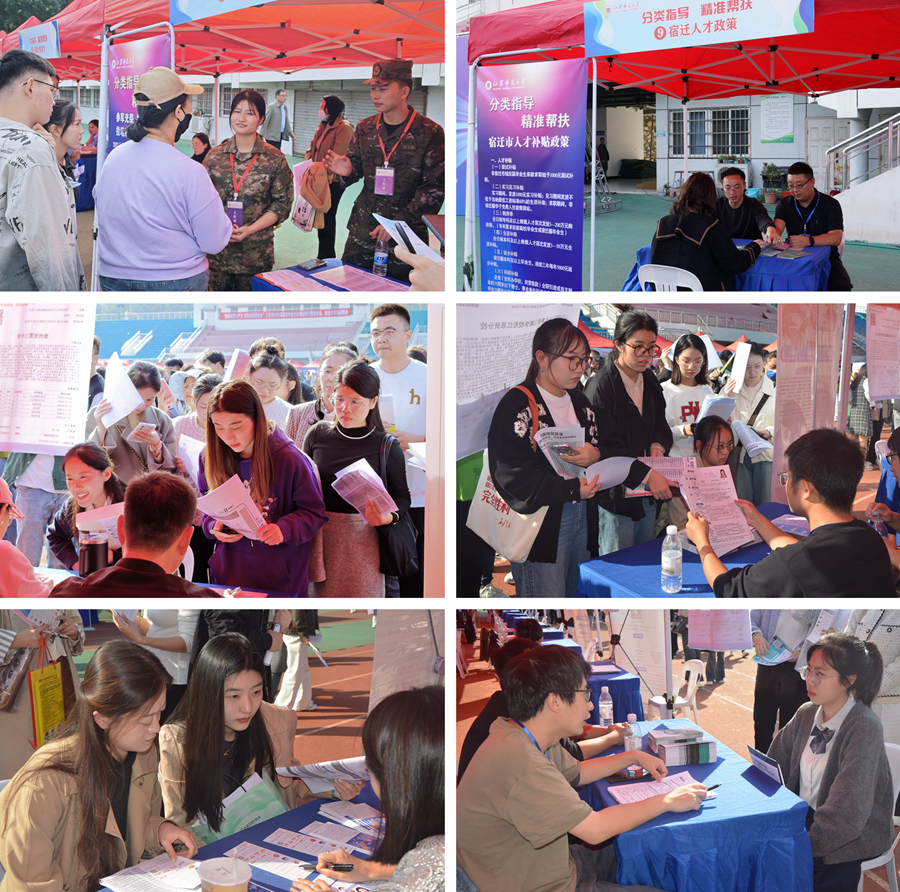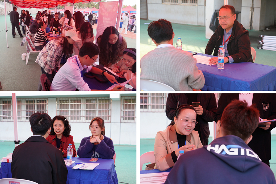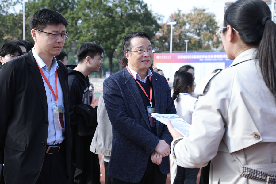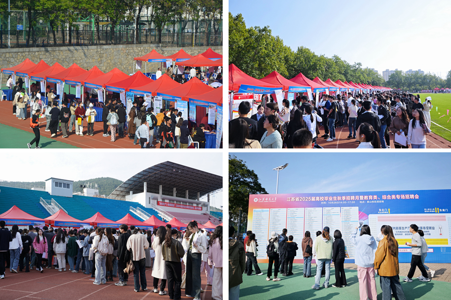 10月26日下午,由江苏省教育厅、江苏省人力资源和社会保障厅等单位主办,江苏省高校招生就业指导服务中心和我校承办的江苏省2025届高校毕业生秋季招聘月暨教育类、综合类江苏师范大学专场招聘会在泉山校区田径场举办。校党委常委、副校长张玉勤,省高校招生就业指导服务中心副主任黄炜,参展用人单位招聘工作人员,我校学生工作处、研究生工作部负责同志,各学院党委副书记、毕业班辅导员、班主任及8300余名学生参加活动。