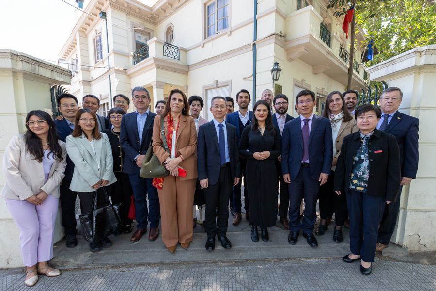 2024年10月21日上午,我校作为联合主办方召开的第七届中拉文明对话论坛在智利首都圣地亚哥成功举行。开幕式由智利大学国际问题研究院院长多罗泰娅·洛佩斯教授主持,中国社会科学院副秘书长马援、中国驻智利共和国大使牛清报现场参会,江苏省人民政府外事办公室主任孙轶、当代中国与世界研究院副院长孙敬鑫线上参会,我校副校长娄峥嵘出席开幕式。