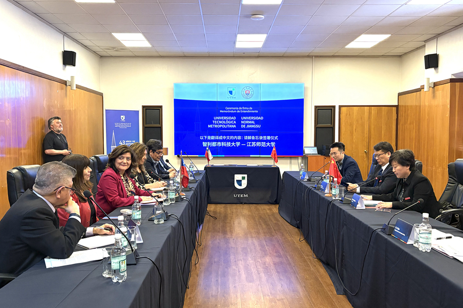 10月21日下午,访问团来到智利都市科技大学,与Marisol Durán校长、Sandra Gaete副校长团队围绕校际交流合作、硕博联合培养、短期文化体验、共建国际联合实验室及一带一路研究分院的设立等问题展开了讨论。座谈会后,两校签署了合作协议。